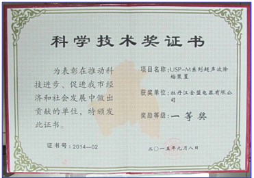 USP-M系列超聲波除垢裝置于2015年獲得牡丹江市人民政府 “科學(xué)技術(shù)一等獎”獎勵
